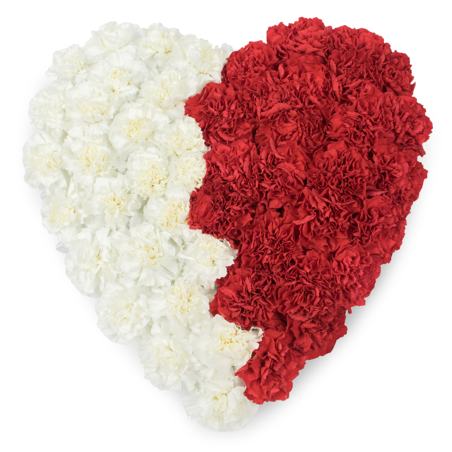 Our heart-shaped carnation bouquet combines the purity of white carnations with the passion of red carnations, creating a visually striking and meaningful arrangement. Each flower is hand-picked for its freshness and vibrant color, ensuring a long-lasting and beautiful display.
